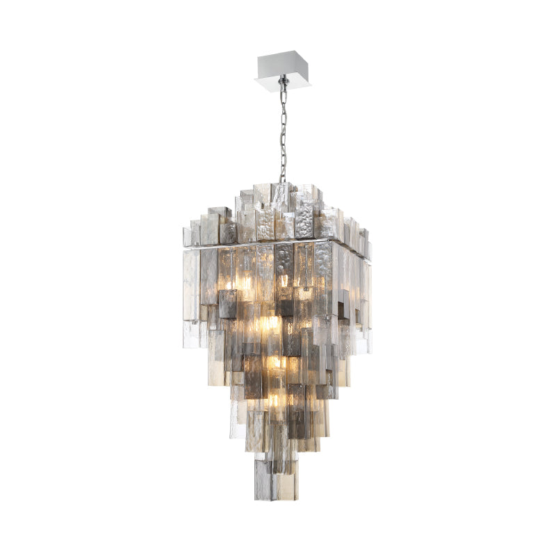 A series of stepped square balusters are the backbone of a staircase; adding grace and strength to a functional element in a building. Using this same tiered visual, Altesa dresses square frames with elongated square tubes of glass. The varying lengths, tones and densities of glass influence the depth and color of light, presenting a mesmerizing display in grand proportions.