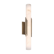 The elegance of the Venna indoor wall sconce is generously shared in these indoor pieces. A cylinder of natural alabaster is cored to reveal the intricate clouds and veins of the stone, beautifully illuminated from within.