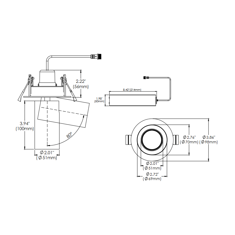 - 80Β° Vertical adjustment, 355Β° Rotation