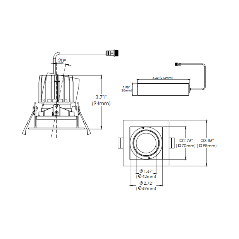 Eurofase TGO1ST Tango 1 Light 10W Square LED Gimbal with Trim, Clear Lens