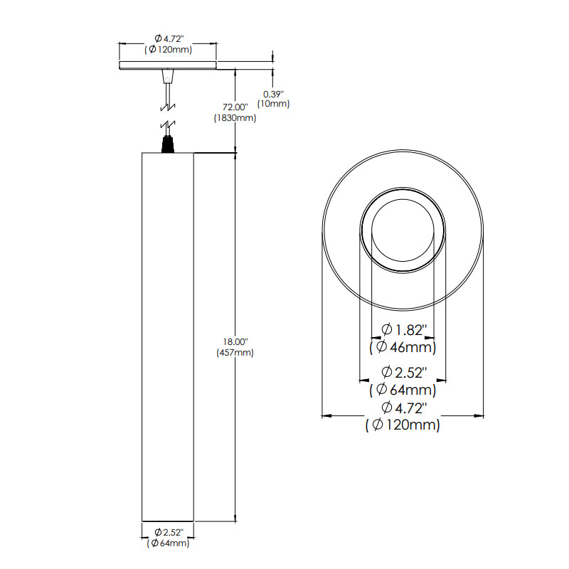 Eurofase WHSSU-SL18 Whiskey Slim 18" 13W LED Cylinder, Suspension Mount, Clear Diffuser