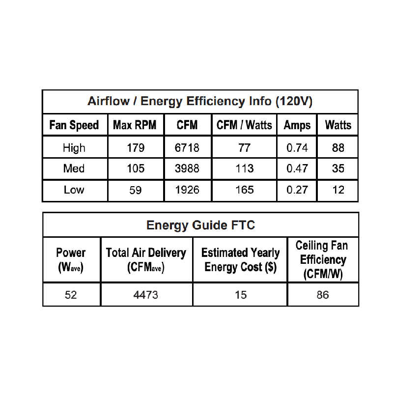 - Airflow Efficiency: 77 cubic ft per minute per watt