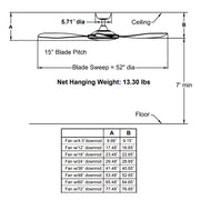 - Blade Sweep: 52"