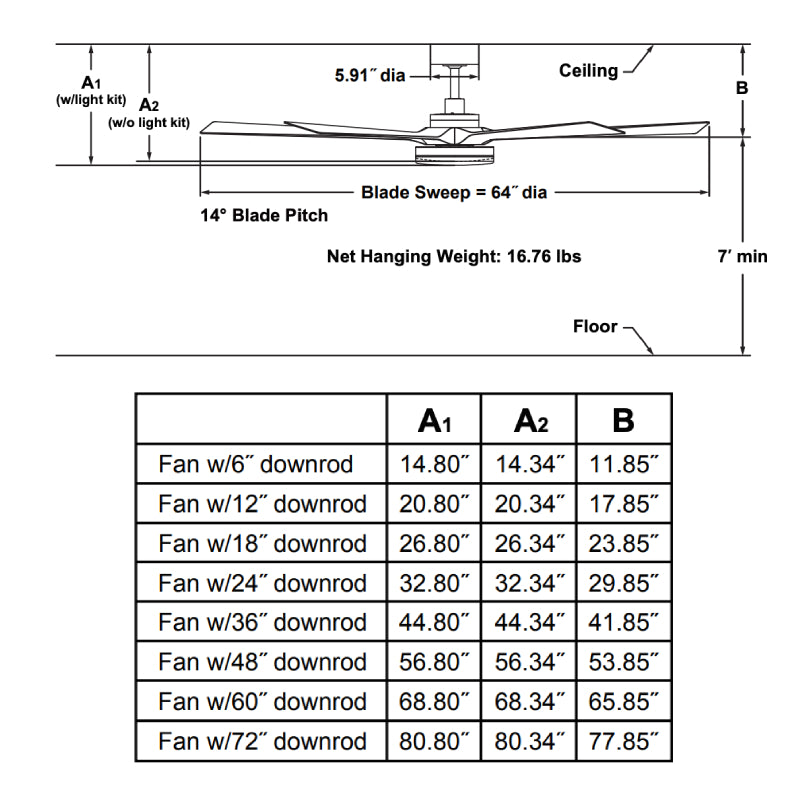 Fanimation FPD8564 TorchAire 64" Indoor/Outdoor Ceiling Fan with LED Light Kit