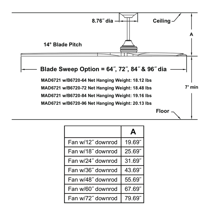 - Downrod: 12"