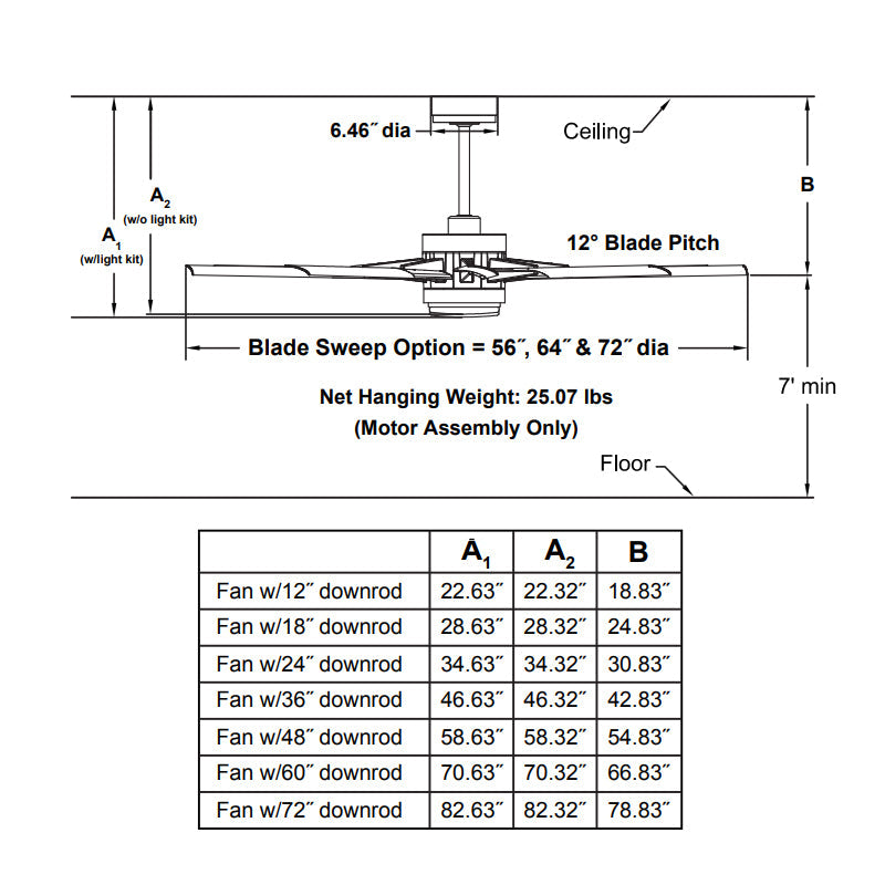 - Hanging Weight: 25.07 lbs (Motor Assembly Only)