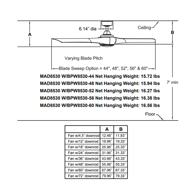 - Blade Finish: Black, Brushed Nickel, Dark Walnut, Natural, Weathered Wood, White Washed