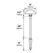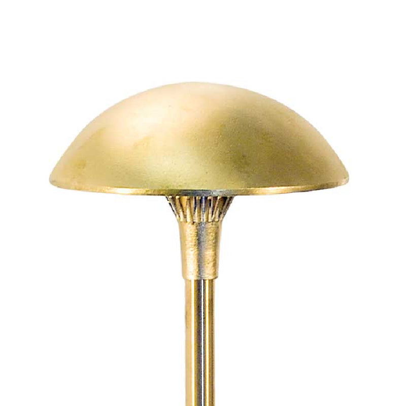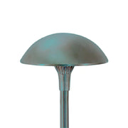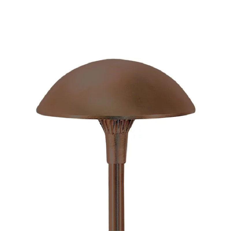 - Construction: Cast aluminum or cast brass mushroom hat; matching extruded aluminum or brass stanchion with fixed LED heat sink hub