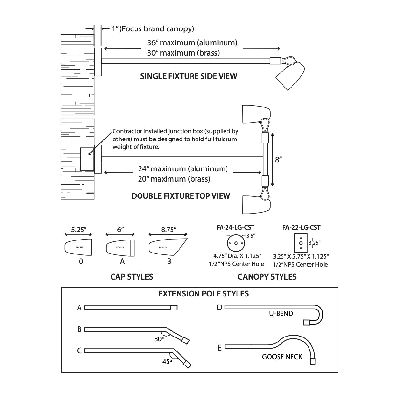 Focus Industries SLS20 18" 8W LED Double Heads Sign Light, 120V, 45° Bend Pole, No Cap