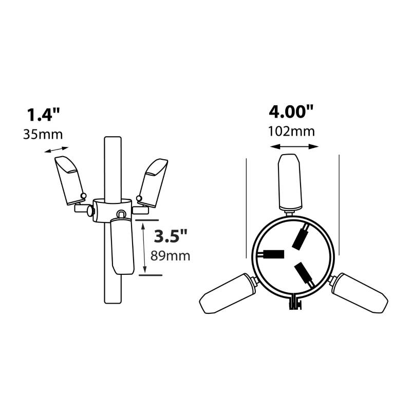 - Construction: Three aluminumheads with matching 360° swivels