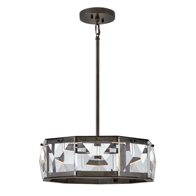 Jolie is a unique blend of sophistication, style, and technology. Integrated LEDs are sleekly concealed within gleaming Heritage Brass rings at the top and bottom of the design. Robust blocks of faceted crystal radiate with light, creating a transfixing silhouette while providing outstanding illumination.
