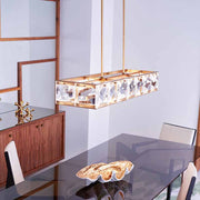 Jolie is a unique blend of sophistication, style, and technology. Integrated LEDs are sleekly concealed within gleaming Heritage Brass rings at the top and bottom of the design. Robust blocks of faceted crystal radiate with light, creating a transfixing silhouette while providing outstanding illumination.