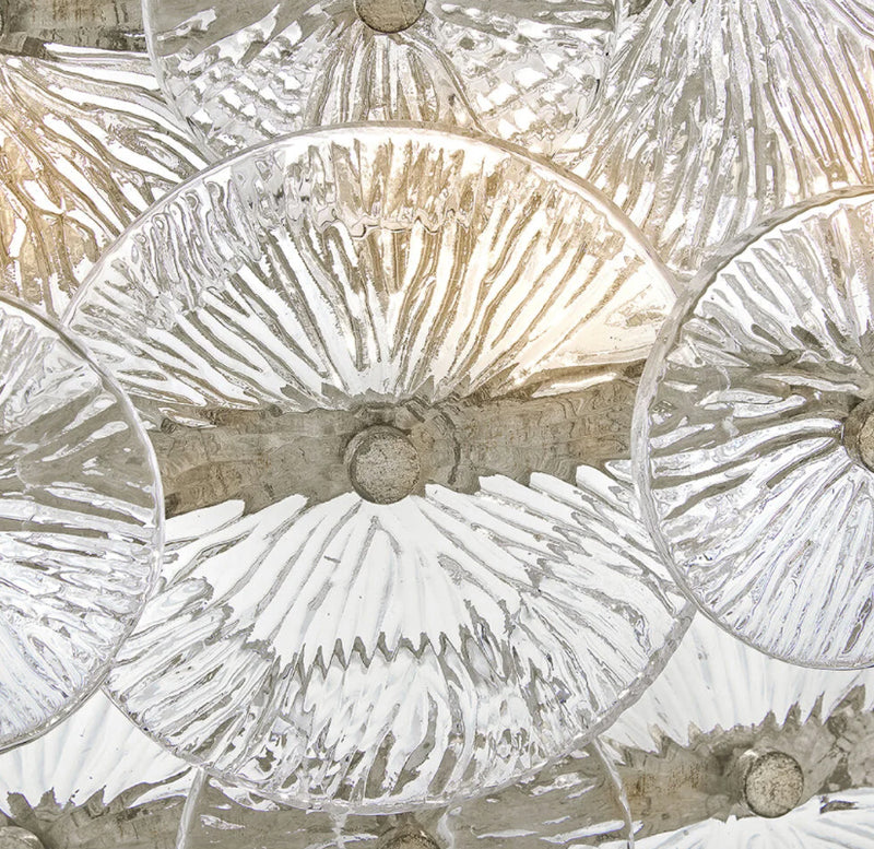 Rene radiates light through multiple layers of beautiful, pressed glass disks.