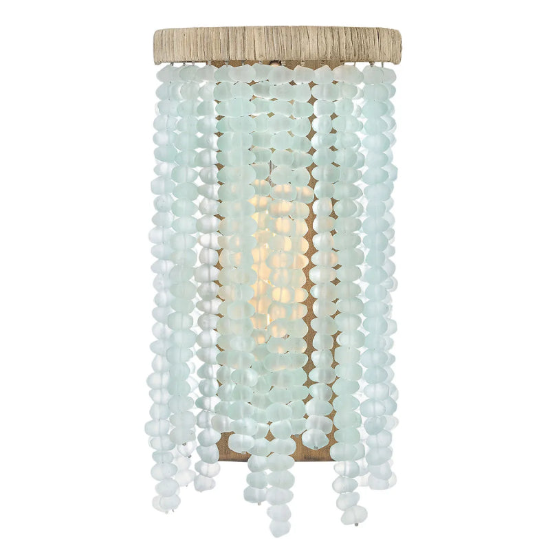 Dune's bohemian chic design showcases strands of soft sea glass combined with a Burnished Gold finish. The designs blend a sophisticated silhouette with organic elements inspired by sun and surf. Dune infuses any space with timeless, mesmerizing elegance.