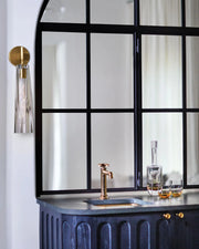 With a dramatic but sleek silhouette and elongated crystal-cut sconce shades, Cosette exudes opulent charm. With two luxurious heavy-cut crystal shade options, smokey gray or clear, both beautifully cast a rich, multi-faceted light pattern. Cosette's sconce includes an elegantly concealed on/off switch, making it perfect for bedsides and intimate spaces pattern.