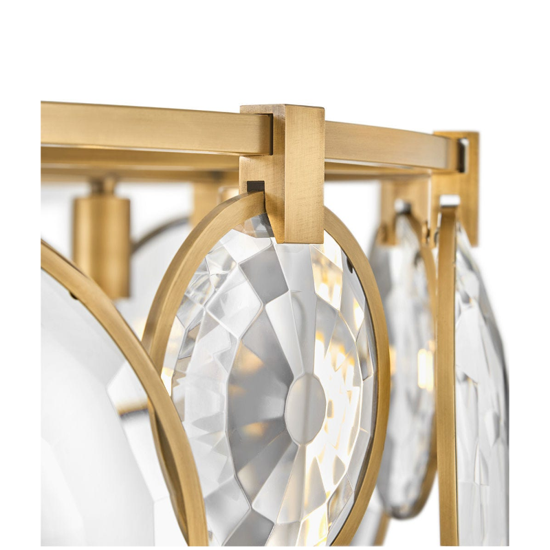 Nala is striking from any angle with a traditional silhouette and elegant eye-catching details. Multi-faceted, optic-crystal lenses surround the circular frame and attach with cast clips in Heritage Brass and Black finishes.