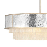 Reverie features a fanciful combination of finishes and shapes to create an opulent transitional silhouette. The robust, hammered stainless steel drum encompasses the textured crystal accents, which create a stunning profile from below. Metal binding adds an artisan touch that completes the look.