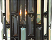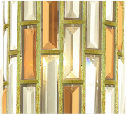 Gemma is a contemporary chandelier collection with stunning rectangular prisms of amber pearl and clear crystal set within a frame of Vintage Bronze or Silver Leaf to create a seamless sparkling, jewelry-like effect.