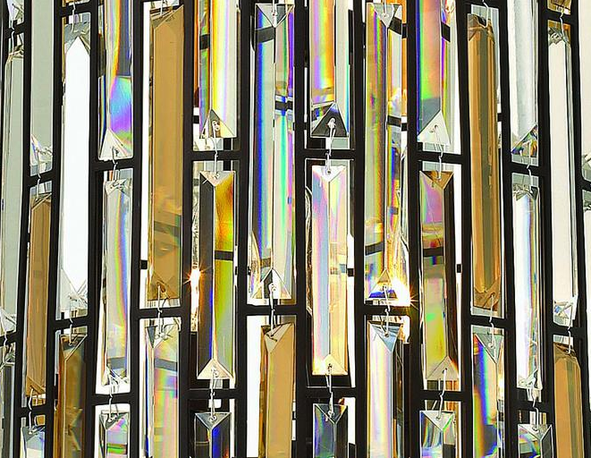 Gemma is a contemporary chandelier collection with stunning rectangular prisms of amber pearl and clear crystal set within a frame of Vintage Bronze or Silver Leaf to create a seamless sparkling, jewelry-like effect.