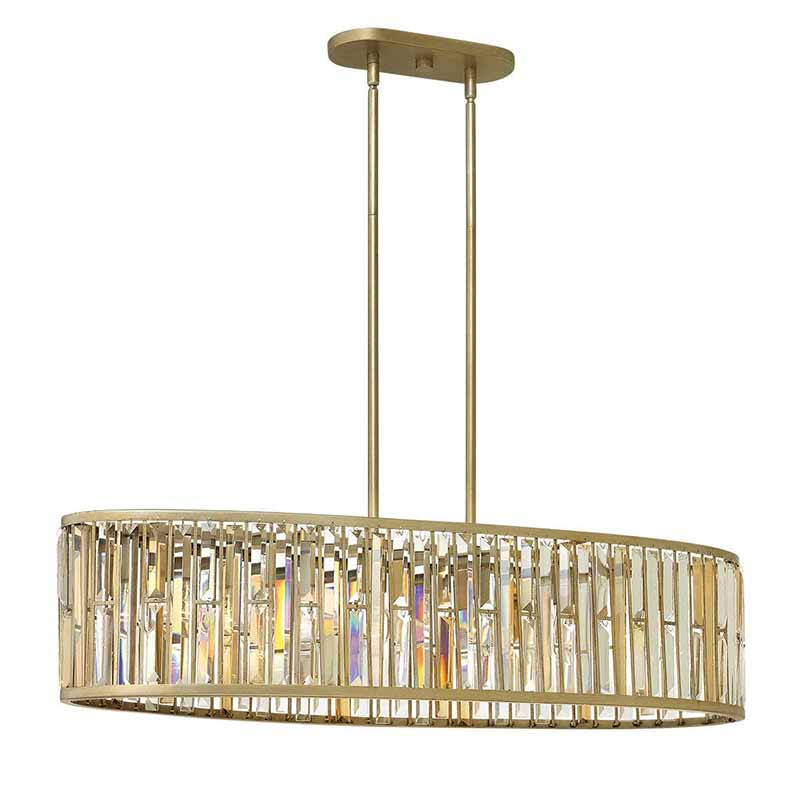 Gemma is a contemporary chandelier collection with stunning rectangular prisms of amber pearl and clear crystal set within a frame of Vintage Bronze or Silver Leaf to create a seamless sparkling, jewelry-like effect.