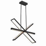 Tangent strikes a pose with its articulating integrated LED frames, each lit from within to create a modern sculptural statement. This dynamic linear chandelier commands attention in either bold Black or Lacquered Brass finish options.