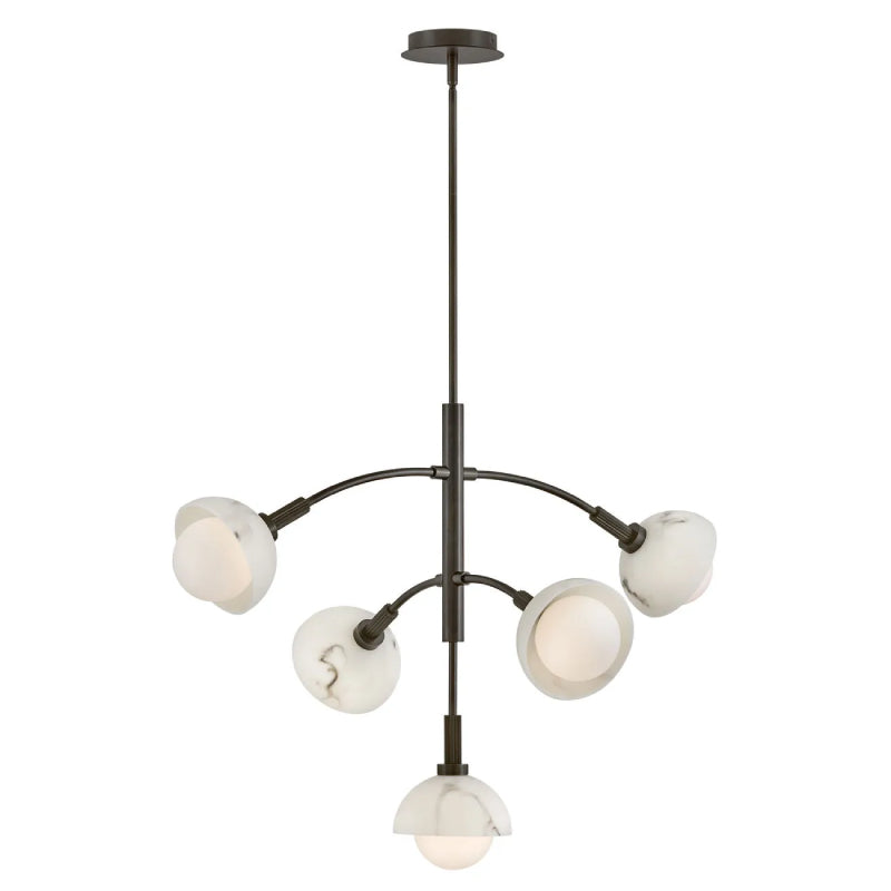 Opposing influences balance Phoebe's multi-tier chandelier with a transitional twist. This dynamic modern-style design commands attention with ribbed stem detail, faux alabaster and cased opal glass combination.