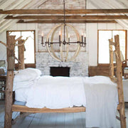 Middlefield's rustic-chic design captures a historical feel with its solid distressed wood reminiscent of weathered ash, steel construction and iron rust finish. A pear-shaped wood finial adds an additional elegant detail.