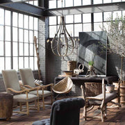 Middlefield's rustic-chic design captures a historical feel with its solid distressed wood reminiscent of weathered ash, steel construction and iron rust finish. A pear-shaped wood finial adds an additional elegant detail.