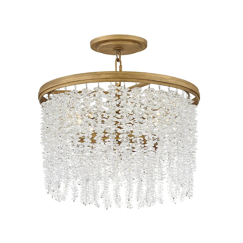 Dripping with glamour, Rubina's magnificent shade is crafted from individually hung strands of sparkling crystal. A traditional tiered frame accentuates every beautiful refraction with its Burnished Gold finish.