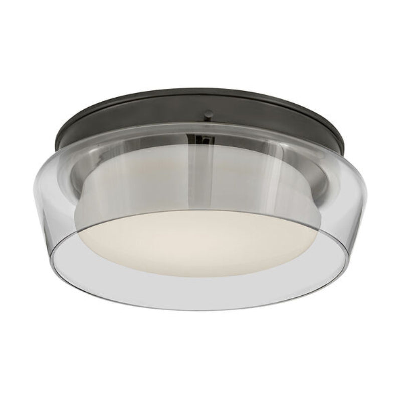 Sleek with a modern, low-profile silhouette, Demi's thick, smoked glass shade surrounds cased opal glass, creating a sophisticated effect as light diffuses from dimmable integrated LEDs.
