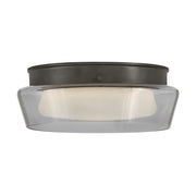 Sleek with a modern, low-profile silhouette, Demi's thick, smoked glass shade surrounds etched opal glass, creating a sophisticated effect as light diffuses from dimmable integrated LEDs.