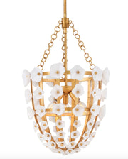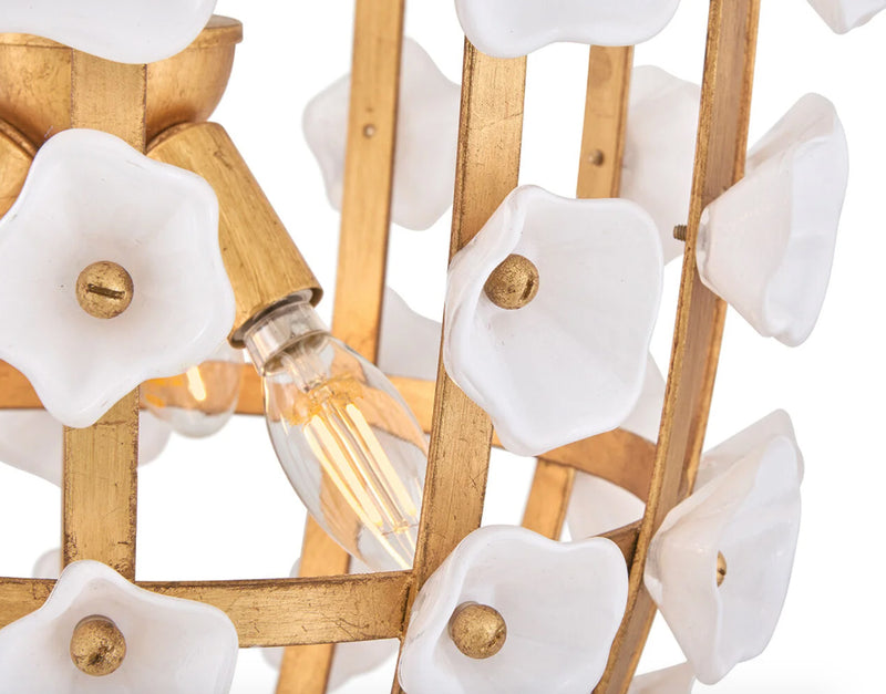 Inspired by the natural romance of annual spring blooms, Azalea’s intricate silhouette is adorned with double-layered glass blossoms crafted from clear and white glass.