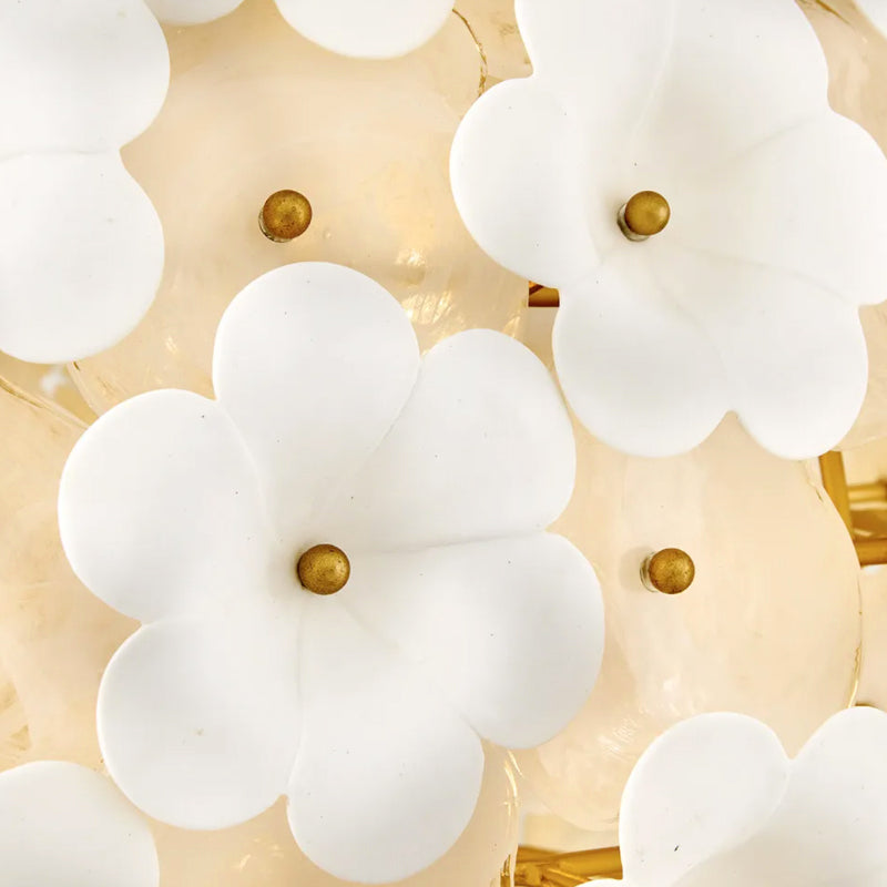 Decadently arranged in glamorous clusters, Marianne’s wispy-patterned white glass and ceramic blossoms create an elegant organic silhouette enhanced by a luxurious glow.