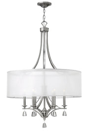 This elegant collection in a Brushed Nickel finish features a sheer translucent double hardback shade and tapered square crystal accents.