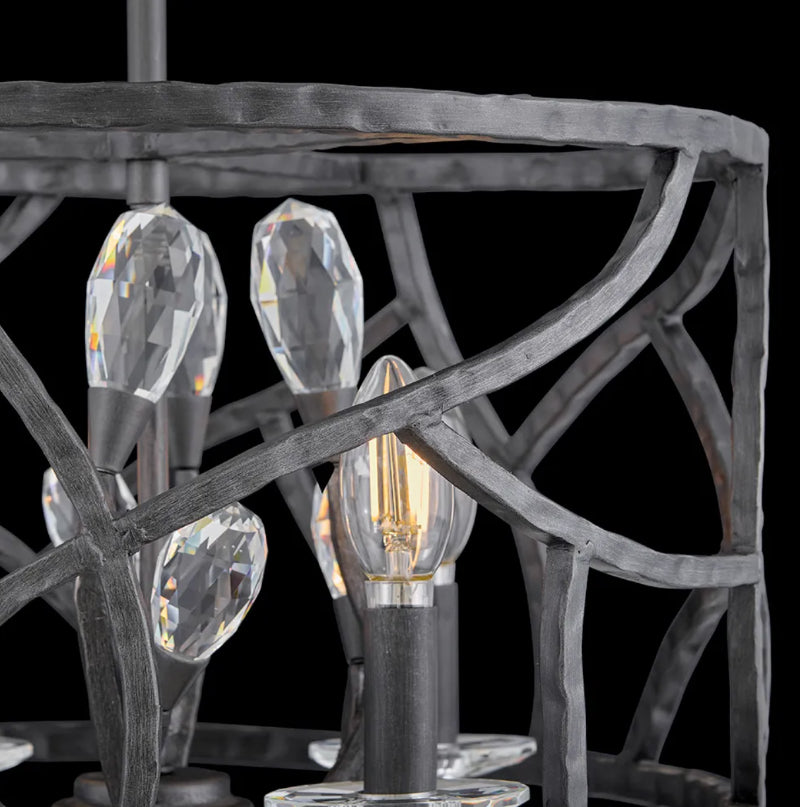 Eve's graceful, hand-forged tubing creates a natural, vine-like pattern in a hammered Champagne Gold finish while faceted clear crystal buds emanate from the tips.