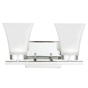The Bayfield bath collection by Sea Gull Lighting delivers simplicity with flair. The transitional design is a subtle combination of clean lines and flared, angular Satin Etched glass shades to bring style and warmth to the bathroom no matter the budget.