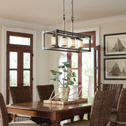 Making a statement without overpowering the surrounding décor, the Dunning lighting collection by Sea Gull Lighting is a chic addition to a wide range of interiors. The bold design is inspired by farmhouse influences seen in the rustic rope detail highlighting the open, square frame which surrounds medium based lamps covered in Crème Parchment glass shades.