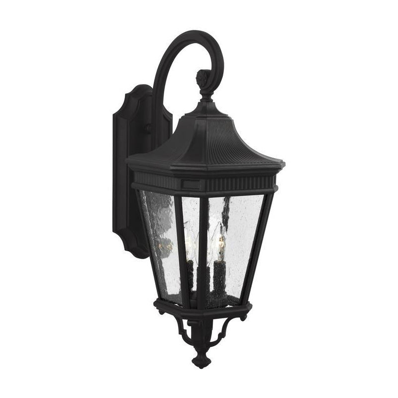 The classic styling of the Cotswold Lane lighting collection by Feiss features the look of dentil molding at the top of each pane of beveled glass which adds to the more formal, traditional aesthetic of this antique gas lantern-inspired collection.