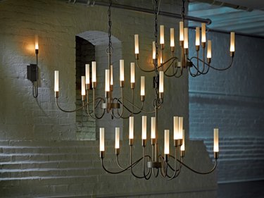 Finely formed, 10 steel arms curve upward to support slender glass that look like the tulip buds that might be found in the town of Lisse in Holland. Inspired by Holland, but crafted by artisans here at our Vermont forge, each piece is unique.