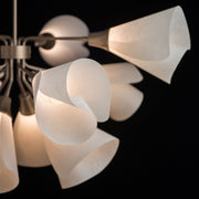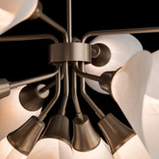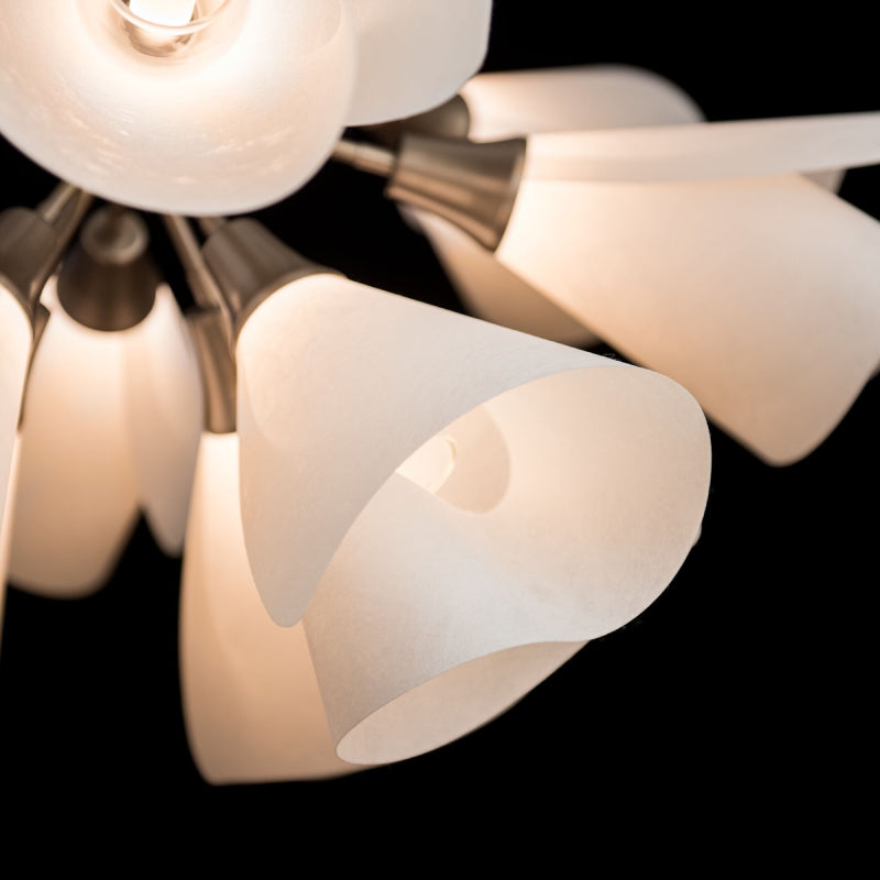 Like a bouquet of delicate blooms, the new 12-Light Mobius Pendant is light and airy, featuring spun frost "petals" for shades. The "stem" is available in a choice of nine finishes, and in three lengths. This elegant pendant creates a burst of botanical beauty in any space.