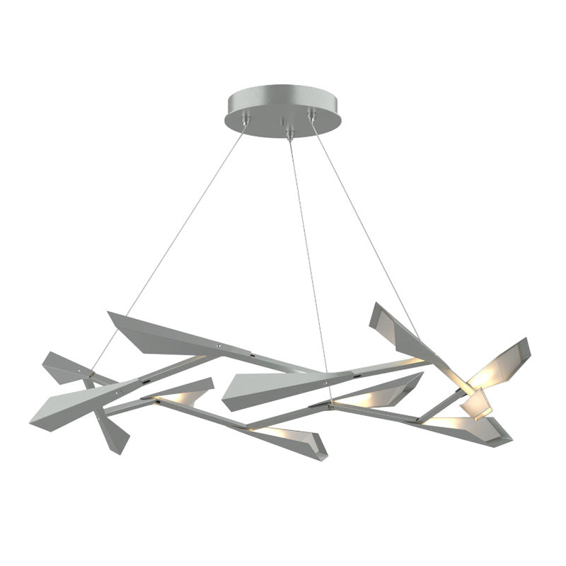 The Quill links together unique geometry in a circular pendant form reminiscent of a crown of laurels. Adjusting the cables allows for the pendant to hang on a level plane or on angle.