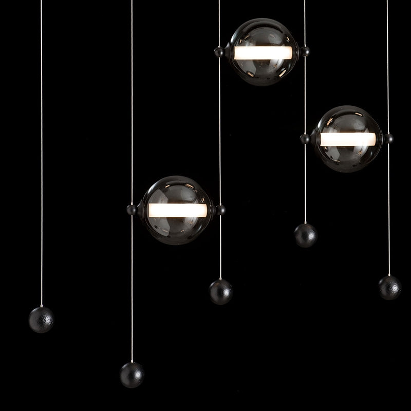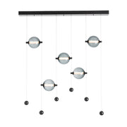 True to its namesake, the Abacus 5-Light Pendant features five blown glass globes that move up and down their low-voltage cable "rails" by virtue of tiny grippers on each side, that when squeezed, free the globe to slide and stop, exactly where you want to position it.