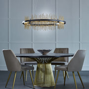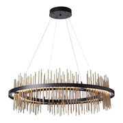 Part of the 2020 Gossamer Collection, the large Gossamer Circular Pendant brings a regal look to any space. Thin vertical spires pierce through an LED lightguide platform embedded in the Gossamer's central frame, creating an ethereal wash of up-and-down light.