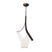Fluid and ethereal, the Sling Pendant gives new meaning to "form and function", An elegantly swooping form makes light itself into a sculptural element. Held by steel handforged by Vermont metalcrafters, the Sling Pendant adds beauty to its space.