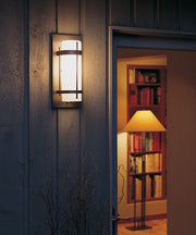 A clean, sleek design that evokes dreams of the Far East is the hallmark of our Banded Collection. True to the collection's name, two handcrafted metal bands, intersected by a bold, vertical bar, encircle the glass and fasten to an aluminum mounting plate.