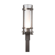 A contemporary look updates a Hubbardton Forge classic. Double-glass cylinders, with a frosted inner and clear seeded outer glass, light the path for guests. Adding both beauty and security to any property, the Banded Outdoor Post Light is appropriate for a wide variety of architectural designs.
