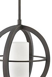 Inspired by globes and navigational compasses, this clean and minimal cage design features intersecting spheres of Oil Rubbed Bronze that enclose a sleek pillar of opal glass. Constructed from sturdy cast aluminum, Compass maps a path to style for facades that range from traditional to contemporary.