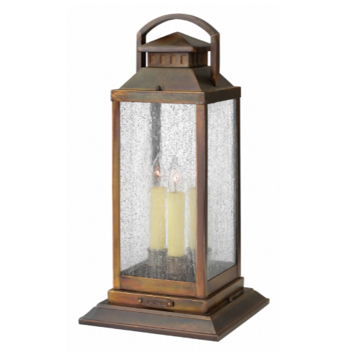 Revere is a classic, traditional coach lantern in solid brass with clear seedy glass panels. The glass faux candle sleeves complete the authentic appearance.