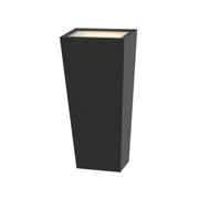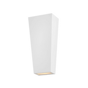 Cruz catches the eye with its modern, sleek design and trapezoidal silhouette. Available in Black and Textured White finish options, Cruz emits a beautiful wall wash illumination through the etched glass to enhance modern facades. Mounting versatility allows individuals to display either the small or large side up or down. LED bulb is included.