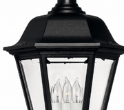Manor House is a classic lantern design with clear beveled glass panels and a bold Black finish. Select-A-Lite options come standard with both candelabra and medium based sockets.